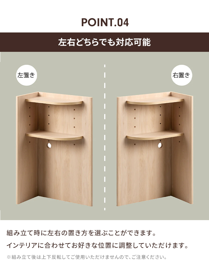 コーナーのデッドスペースを有効活用でき省スペースで設置OK。