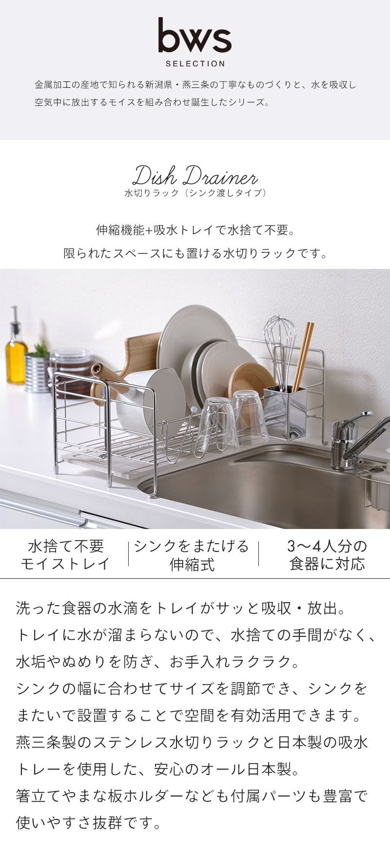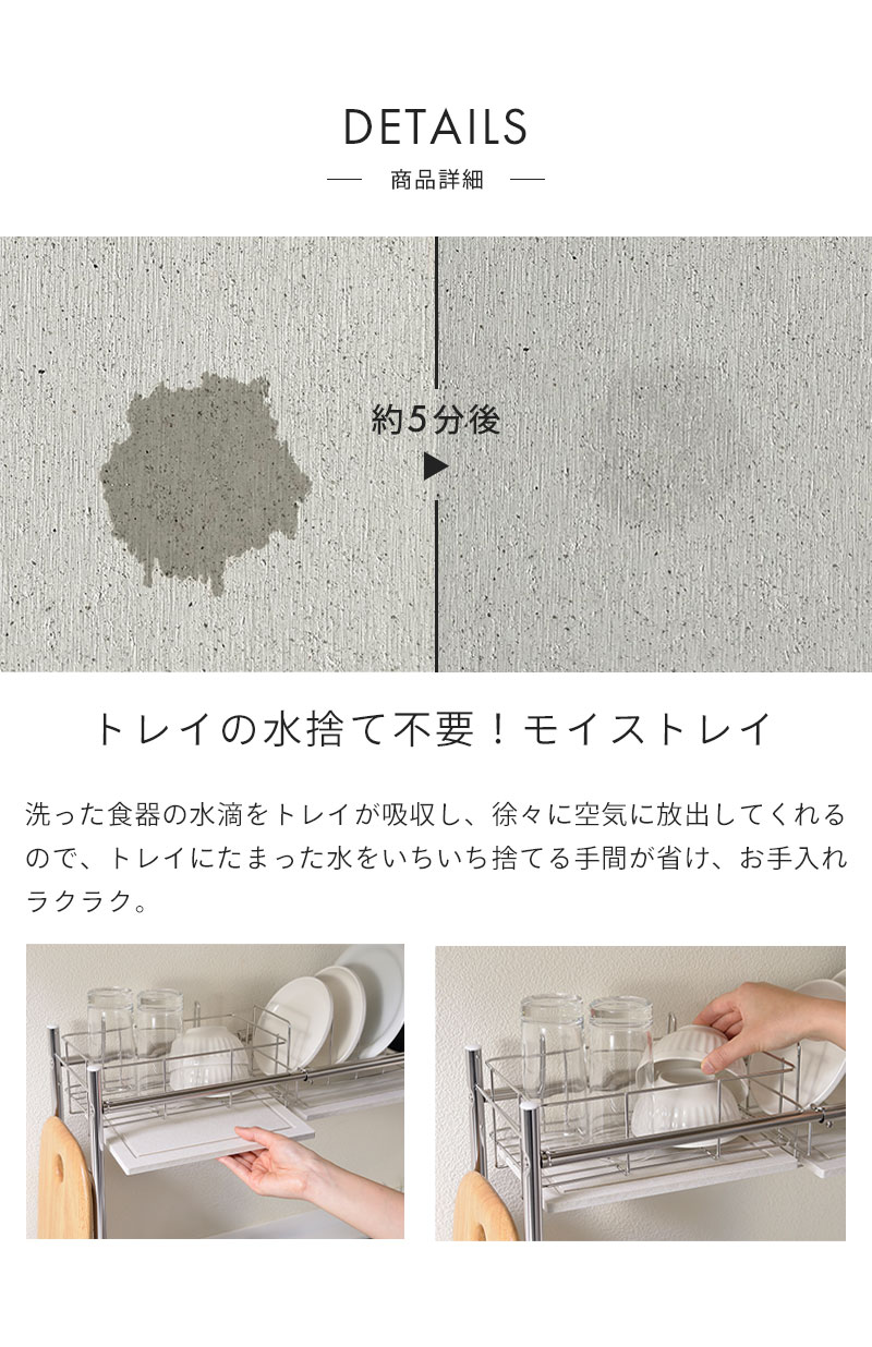新潟県の燕三条製の水切りラックと日本製の吸水素材モイスを組み合わせました。