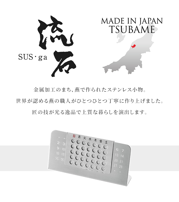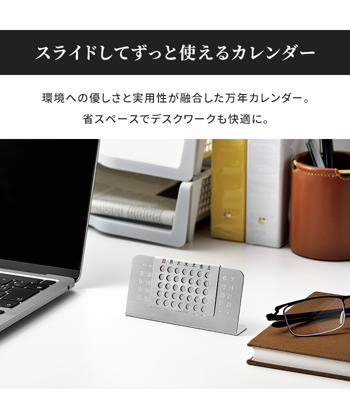 卓上カレンダー 万年カレンダー ステンレス製 カレンダー 卓上 コンパクト デスクワーク おしゃれ スライド シンプル ずっと使える 燕三条 日本製 国産 新生活