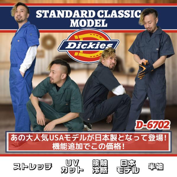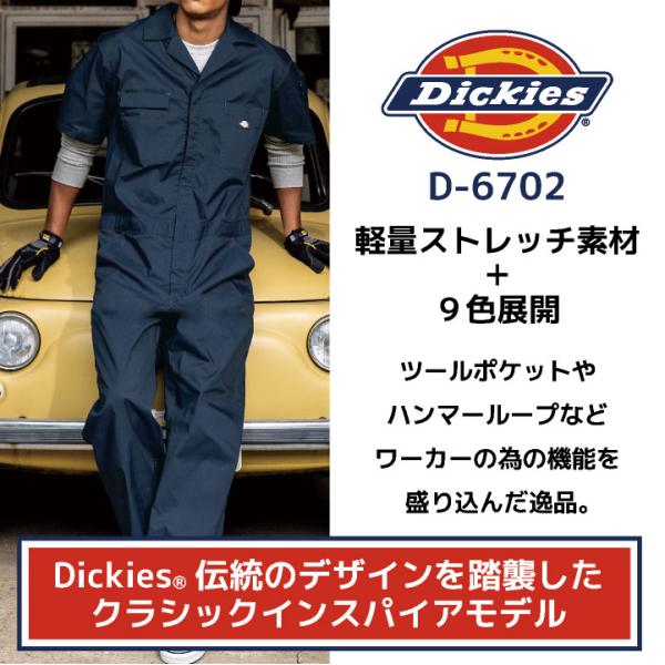 D-6702 Dickies Dickies伝統のデザイン 日本製 薄手生地で軽く 着心地のよい半袖ツナギ ヨコ伸び約14% つなぎ D6702 コーコス信岡 CO-COS ツールポケット ハンマーループ