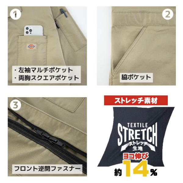 ディッキーズ Dickies 半袖 つなぎ ストレッチ 接触冷感 UVカット ツナギ ジャンプスーツ 円管服 作業着 農業 整備 DIY 春夏 コーコス (即日出荷) cc-d6702