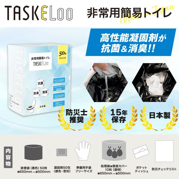 TASKELoo 50回セット8個(400回分) 簡易トイレ どこでも簡単トイレ 15年保存&日本製 携帯トイレ 防災トイレ 非常用トイレ 防災グッズ 防災 アウトドア