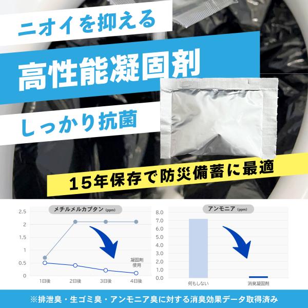 抗菌剤凝固剤で、菌の増加による嫌な匂いをしっかり抑えることができます。アンモニアだけでなく、糞尿に多く含まれるメチルメルカプタンによる臭いにも消臭効果を発揮します。 500mlもの水分が素早く固まり安心です。また、劣化しにくいアルミ製のパッケージにより、長期保管を可能にしました。