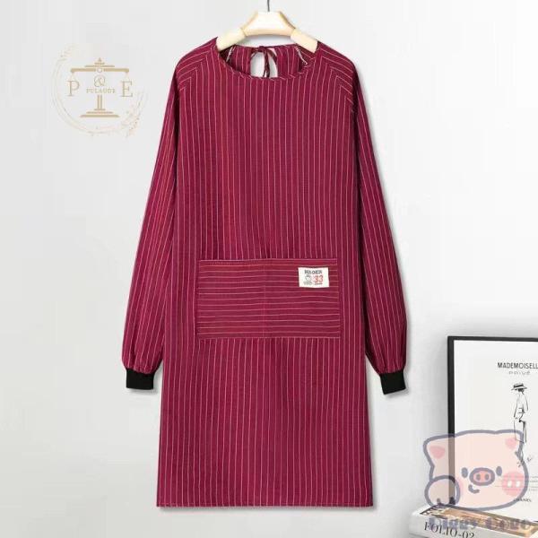 【キーワード】割烹着 おしゃれ 保育士 かわいい エプロン かっぽう着 前掛け エプロンコート キッチン雑貨 家事用品 スモック 大きいサイズ 料理 保育士 秋 冬 ストライプ ゆったり ロング丈 あったか 防汚 ポケット付き 防水 家事 長袖