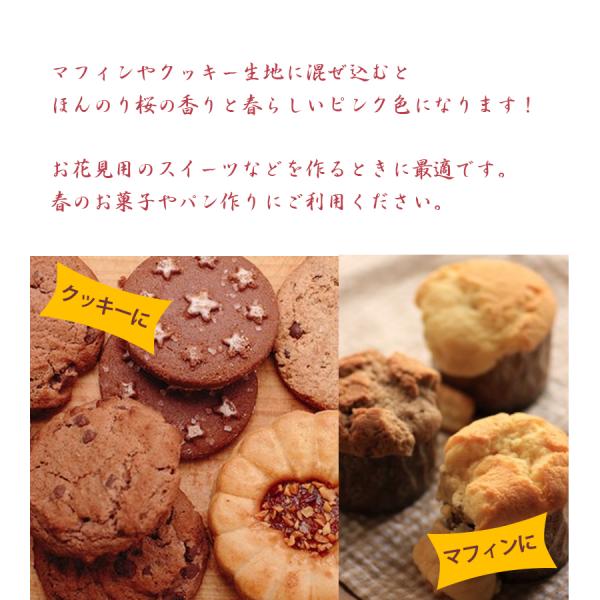 マフィンやクッキー生地に混ぜ込むとほんのり桜の香りと春らしいピンク色になります♪