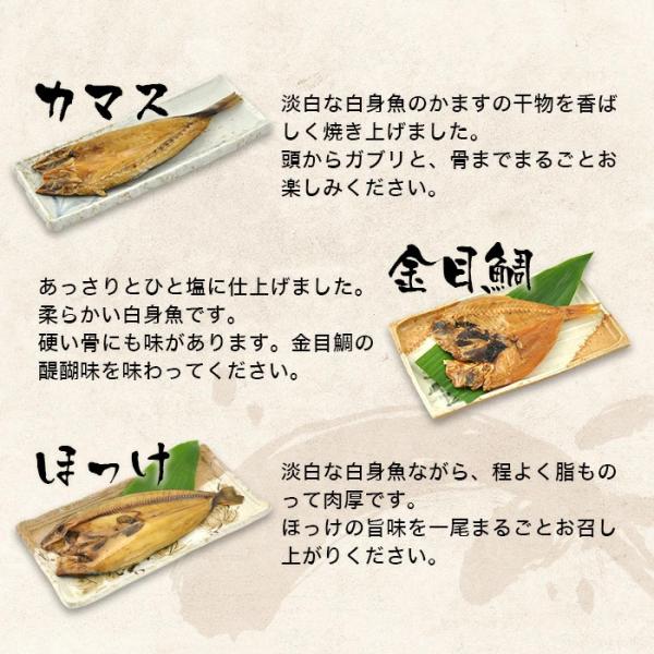 真アジ(鯵 70g) 1枚・さんま(秋刀魚 60g) 1枚・かます(カマス60g) 1枚・金目鯛(キンメダイ 70g) 1枚・ほっけ(ホッケ70g)1枚・いわし(鰯60g)1枚・かれい(カレイ60g)1枚の詰め合わせです。