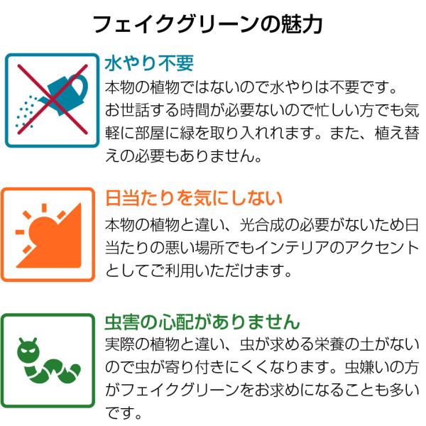 フェイクグリーンは土を使用せず、水やりの必要の必要がありません。