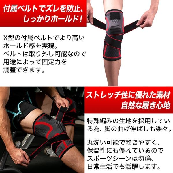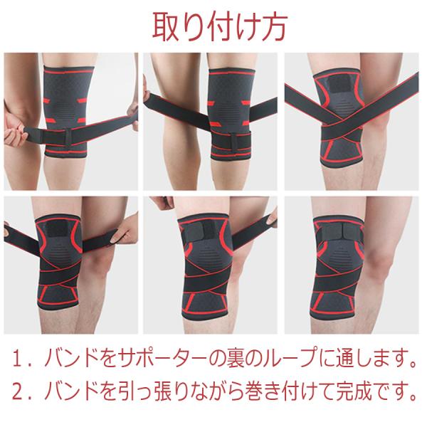 ・膝サポーターは2本の加圧式ベルトで調節できます。必要に応じて締め付けを調整できるため運動中の膝と関節の間の摩擦を減らすことができあます。