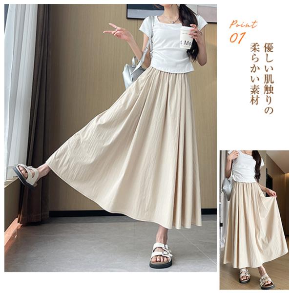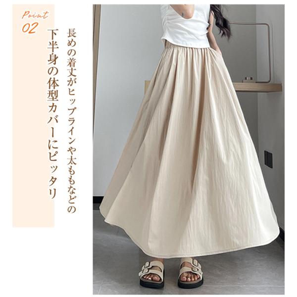 【春の新色登場!】フレアスカート ロングスカート ミモレスカート レディース ハイウエスト ウエストゴム 着痩せ Aライン 体型カバー 脚長効果 春 夏 秋 爆買