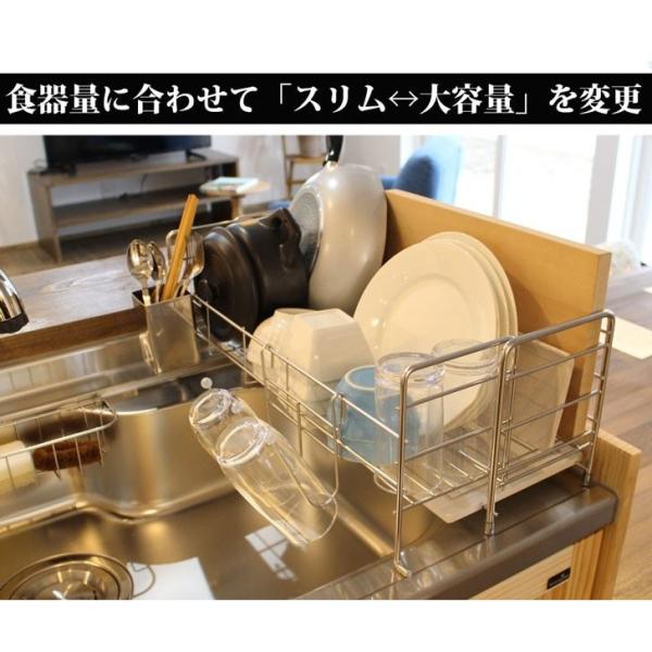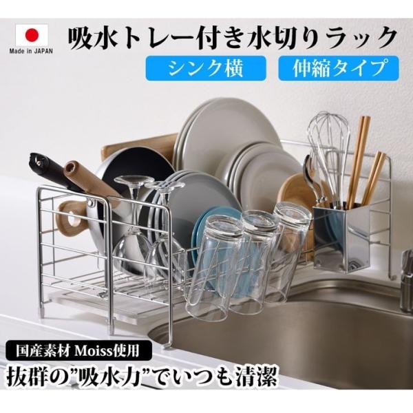 アスベスト不使用 検査済 珪藻土 水切りラック 燕三条 ステンレス 伸縮 大容量 おしゃれ 水切りかご スリム スライド トレー