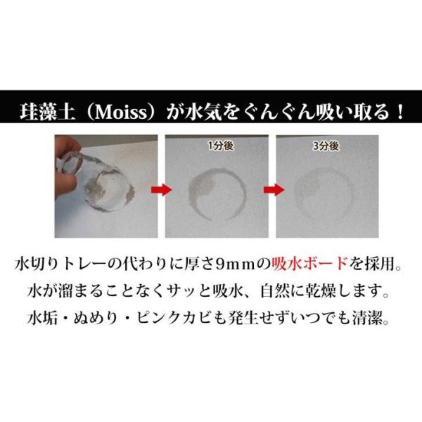 珪藻土と同様の特徴を持つ、国産素材Moissをトレイにした水切りラック。