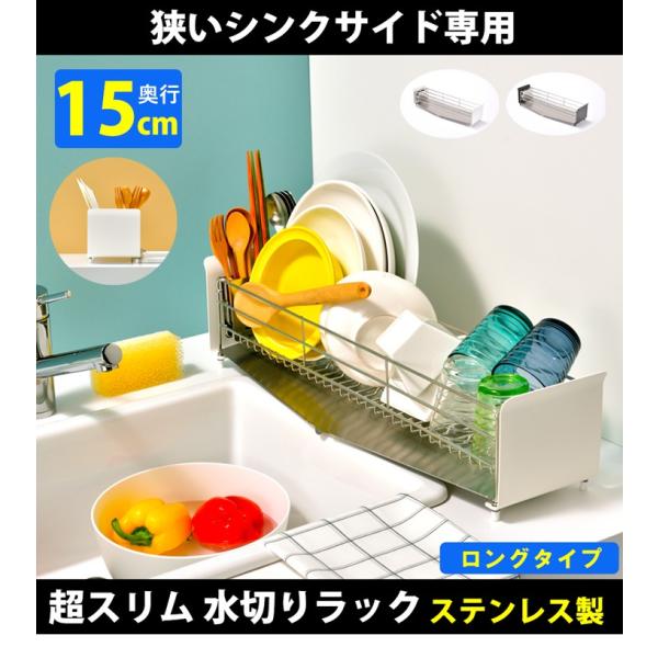 水切りかご ステンレス スリム ロング 奥行 約17.7cm 幅 62.4cm コンパクト キッチン DINKS 一人暮らし