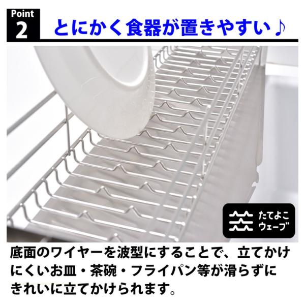縦にも横にもお皿を置ける「たてよこウェーブ」搭載でお皿やお椀も滑り知らず。