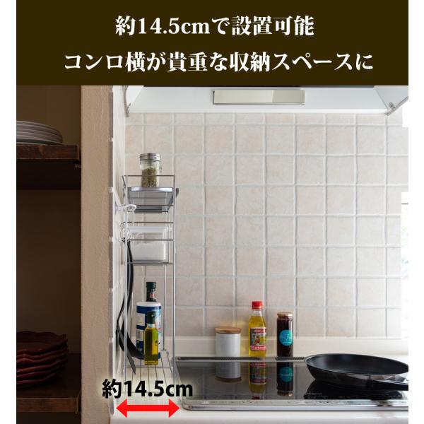 コンロサイド ラック 日本製 燕三条 奥行 14.5cm キッチンラック 調味料ラック 収納 キッチン収納 コンロ隙間ラック