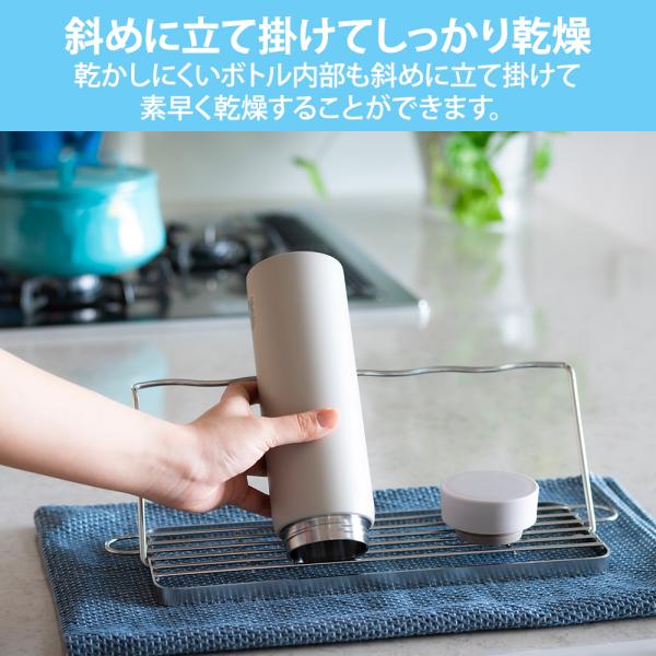 乾かしにくいボトル内部も斜めに立て掛けることで、素早く乾かすことができます。