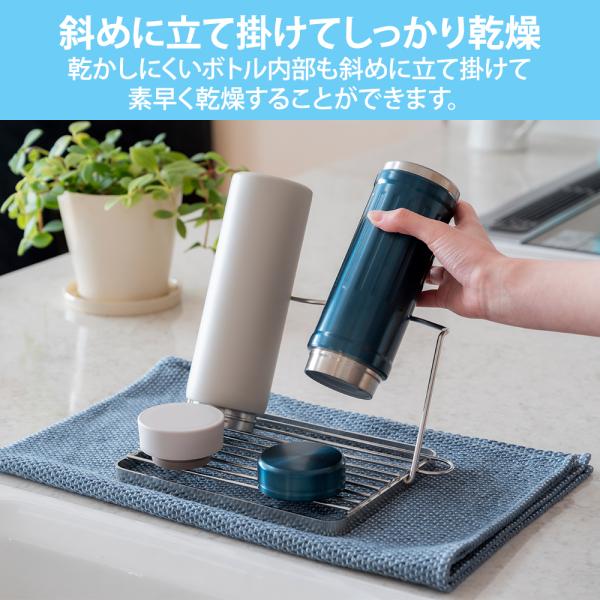 乾かしにくいボトル内部も斜めに立て掛けることで、素早く乾かすことができます。