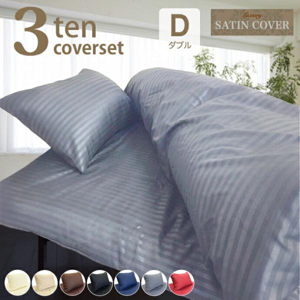 布団カバー 4点セット ダブル 敷き布団用 ベッド用 カバー シーツ 選べるカラー 柔らか シルク調 サテン調 ホテル仕様 ホテルライク