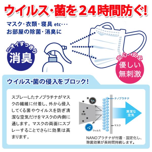 【92%が推奨!】30ml マスク スプレー 除菌 NANOプラチナ 消臭 抗菌 CC 花粉 対策 繰り返して使用できる 長時間除菌