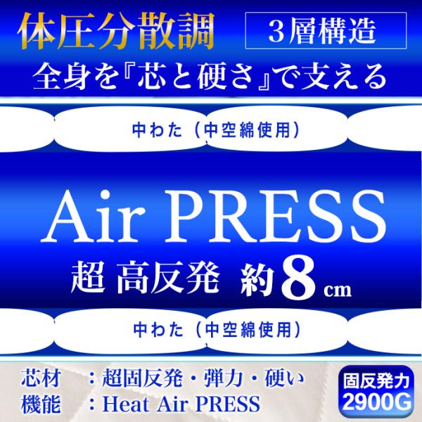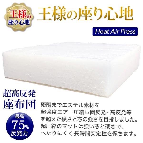 ◆ヒートエアープレス加工は極限までエステル素材をエアー圧縮して強度な高反発を完成しました。