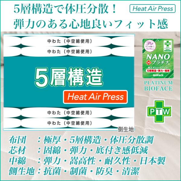 日本製 8点 布団セット シングル 高反発 5重構造 極太 極厚 敷布団 国産 掛け布団 枕 ほこりが出にくい布団 NANOプラチナ 洗える 防ダニ