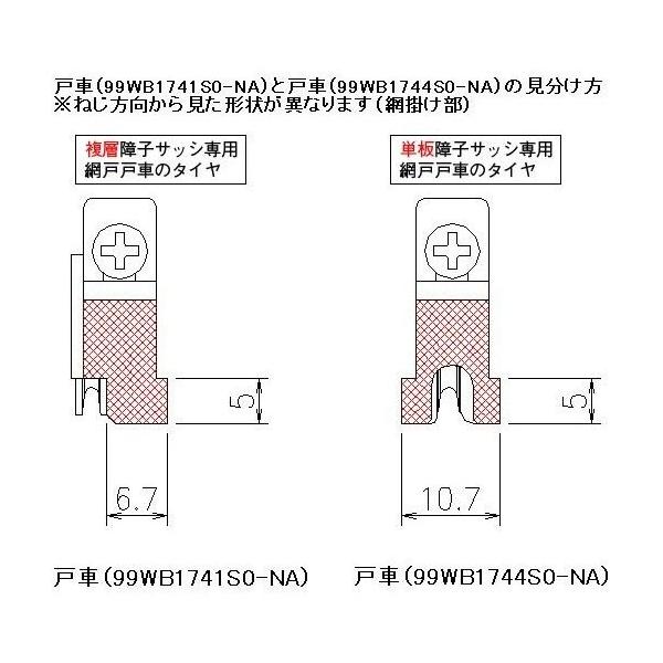 類似部品99WB1744がありますが、戸車のタイヤ形状が異なります。