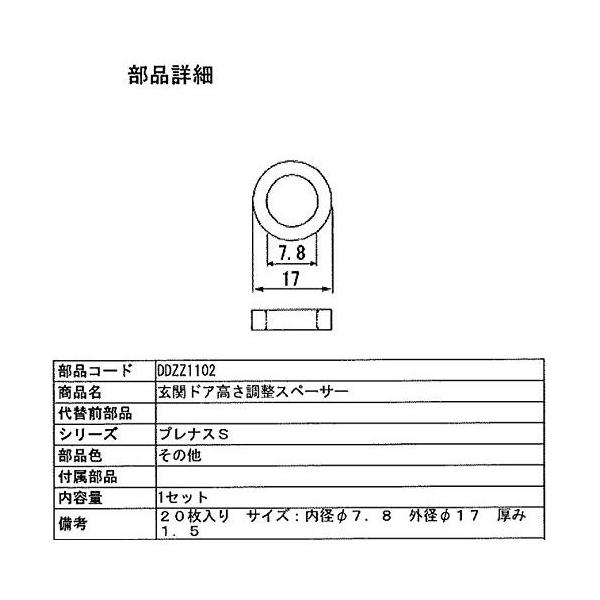 Shop TOS ★★★★★ 5.0(650件) 玄関ドア トステム 補修部品 ドア用高さ調整スペーサー 20枚入 送料無料 玄関ドア トステム 補修部品 ドア用高さ調整スペーサー 20枚入 DDZZ1102 ★★★★★ 3.67(3件) 玄関ドア吊元丁番用のスペーサー 外径17mm 内径7.8mm 厚み1.5mm 色:グレー Shop TOS 人気ランキング もっと見る Shop TOS 商品一覧 もっと見る