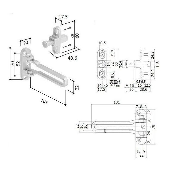 YKK 玄関ドア 鍵交換 自分で 純正品 ドアガード(ヴェナートJD型・プロントPD型用)片開き・袖付き扉用 HH5K18448