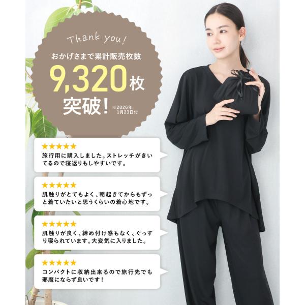 トラベルパジャマ ポーチ付き レディース 長袖 かぶりタイプ 天竺素材 ストレッチ素材 巾着付き 収納 おしゃれ 旅行用 お泊り 母の日 かわいい w3-904105 圧縮