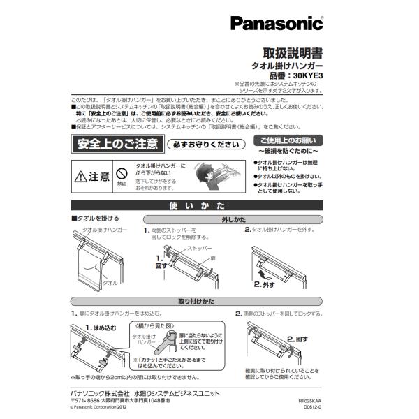 QS30KYE3 JUA30KYE3 VJ30KYE3 在庫有・平日午前中のご注文で当日出荷 純正品・パナソニック NEW Sクラス タオル掛け(ライン取っ手用)
