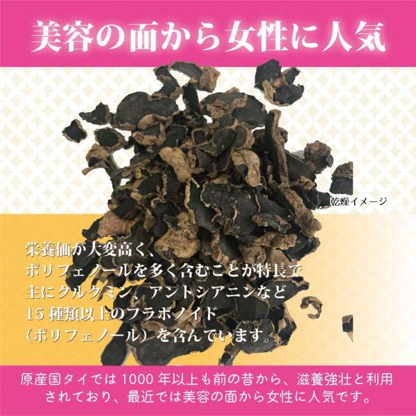 栄養価が大変高く、ポリフェノールを多く含むことが特長で主にクルクミン、アントシアニンなど15種類以上のフラボノイド(ポリフェノール)を含んでいます。原産国タイでは1000年以上も前の昔から、滋養強壮と利用されており、最近では美容の面から女性に人気です。