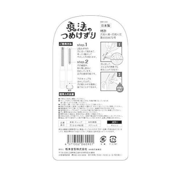 【松本金型】 切らないつめきり 魔法のつめけずり (1本) オレンジ × 2個セット つめやすり 【送料無料】