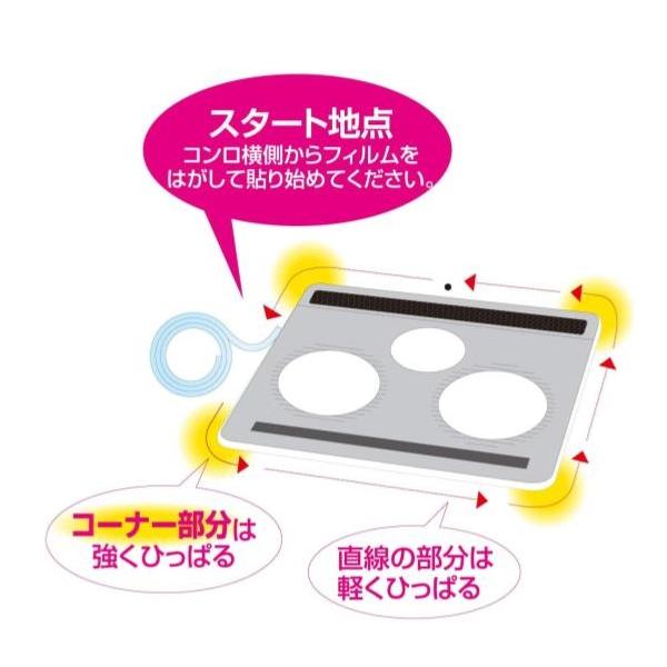 ご使用前に:油や水気があると製品が取付けにくくなりますので、スクレーパーやふきんを使ってフチの下付近やフチ部分の掃除をしてください。汚れをよく取り、乾かしてから取付けてください。