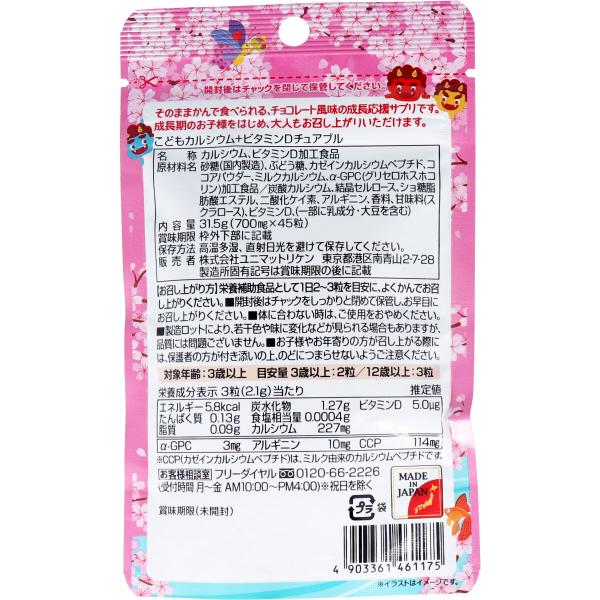【2袋セット】こどもカルシウム+ビタミンDチュアブル チョコレート風味 45粒入【送料無料】【ポスト投函でお届け】