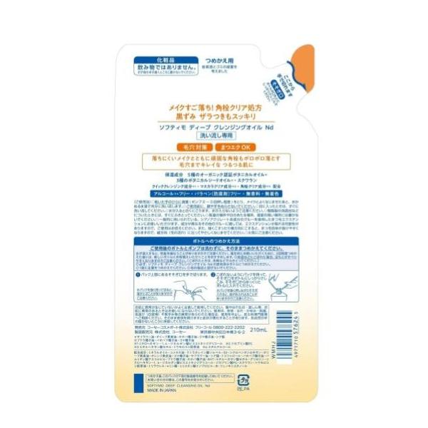 【送料無料】ソフティモ ディープ クレンジングオイル つめかえ用 210ml【1個】【ポスト投函でお届け】