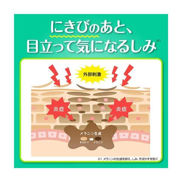 にきびのあとは、刺激などの炎症によりメラニンの生成が促され、色素沈着が起こりやすい状態に。そんなしみやそばかす対策に。