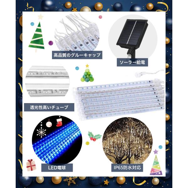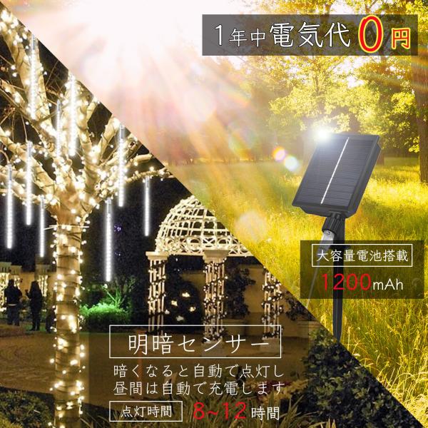 イルミネーションライト 流れ星 流星 屋外 つらら 10本 ソーラーライト 明暗センサー 防水 7m 電飾 祭り 店 庭 ガーデンライト 電池 クリスマス ハロウィン A174