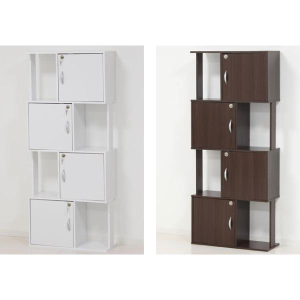 収納棚 4段 鍵付き スタイリッシュデザイン 木製 高さ139 A4ファイル収納可能