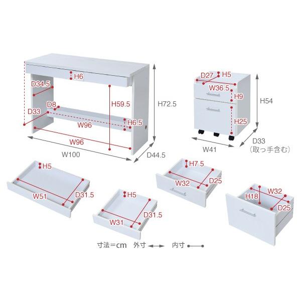 パソコンデスク 引き出し チェスト付き ワークデスク 作業机 学習机 木製 幅100 奥行45