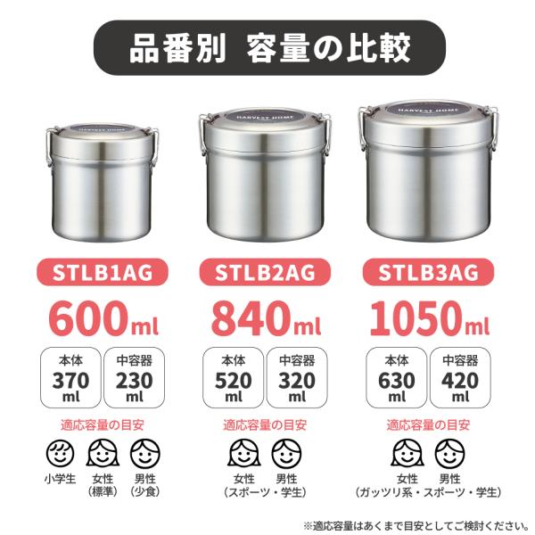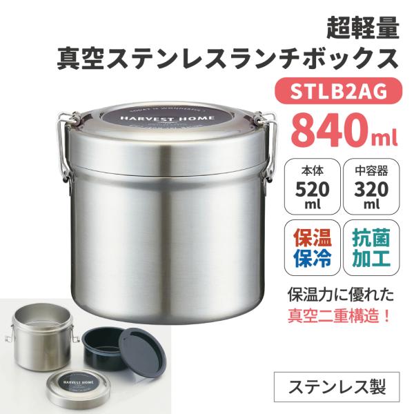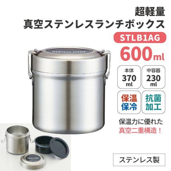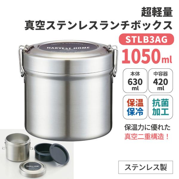 スケーター 保温弁当箱 600ml 840ml 1050ml どんぶり 2段 保温保冷 ランチジャー 真空断熱構造 ランチボックス シルバー STLB skater 男性 女性 小容量 大容量