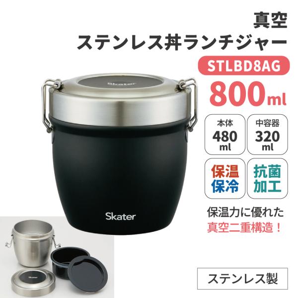 真空 保温 弁当箱 総 容量 550ml 800ml どんぶり 丼 ランチジャー 保冷 真空ランチボックス 保温ジャー ステンレスランチボックス stlbd6ag stlbd8ag スケーター