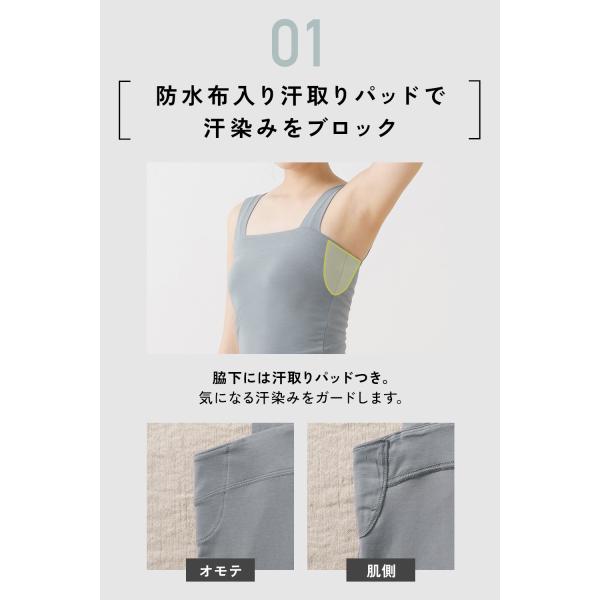 汗取り インナー チラ見え防止 タンクトップ ブラ紐隠し 接触 冷感 消臭 速乾 綿混 素肌ドライ Premium スクエアネック 脇汗 汗染み 肌着 レディース 春夏