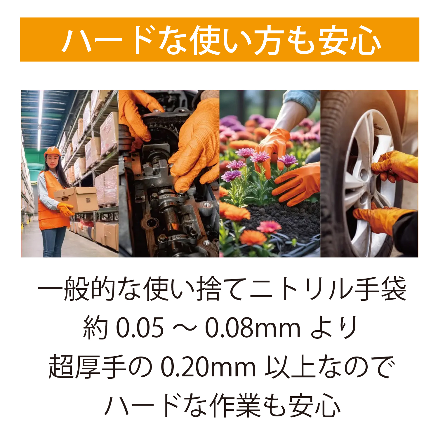 超厚手仕様で作業時の安定感を重視したニトリル手袋