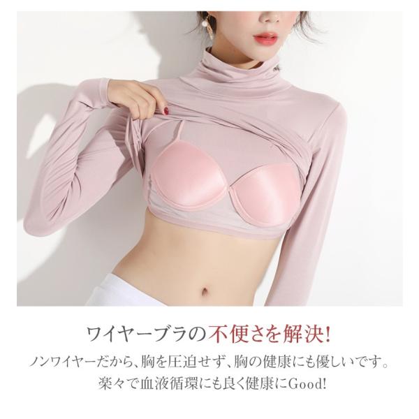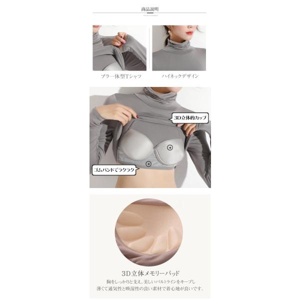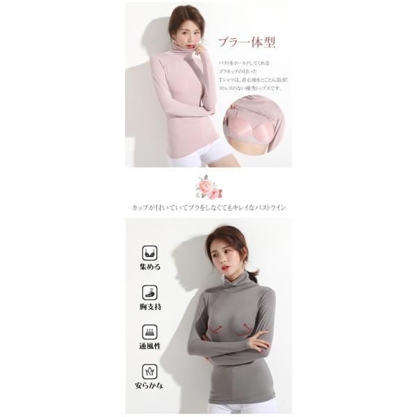 タートルネック ハイネック ブラトップ レディース トップス インナー tシャツ 長袖 カップ付き 大きいサイズ 秋 冬 カットソー 定番 シンプル 無地 おしゃれ