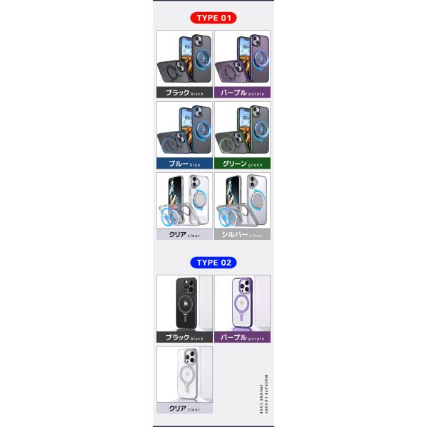 カラー : type01(ブラック、パープル、ブルー、グリン、クリア、シルバー) / type02(ブラック、パープル、クリア)