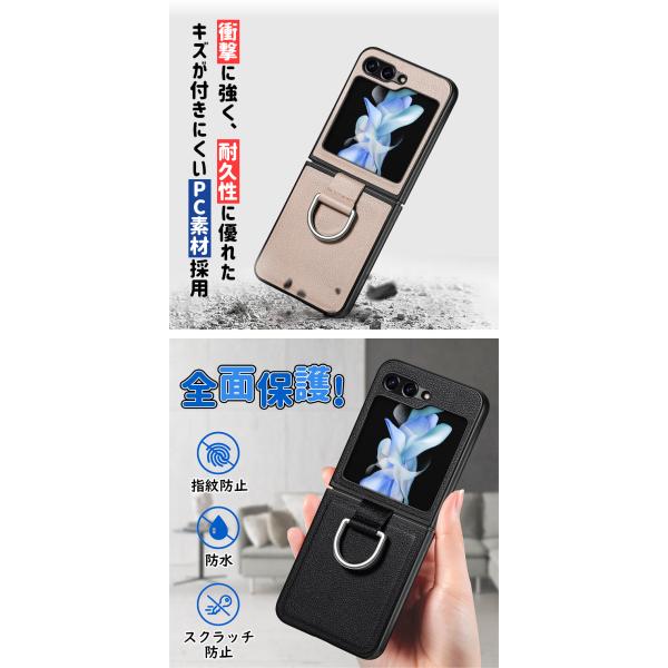 Galaxy Z Flip7 ケース Flip6 Flip5 Flip4 5G ホールドリング付き PC素材 PUレザー カバー スマートリング レザー ギャラクシー リング付き おしゃれ かわいい