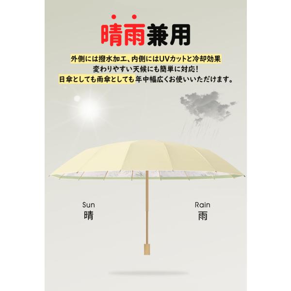 ・外側には撥水加工、内側にはUVカットと冷却効果。日傘としても雨傘としても、年中幅広くお使いいただけます。