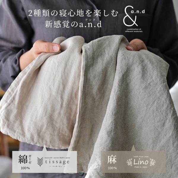 枕カバー 43×63cm枕用 リネン 和晒し綿ダブルガーゼ 2種類の寝心地 日本製 綿100% 麻100% フレンチリネン 春 夏用 新生活 【a.n.d】