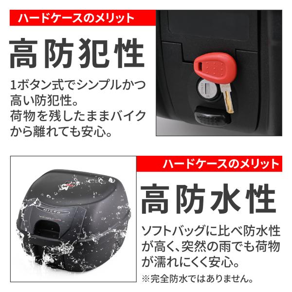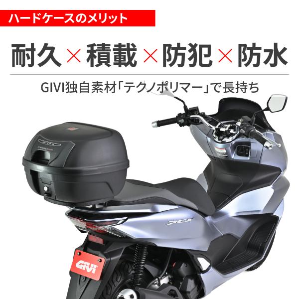 付属の汎用ベースを使用し純正や市販のキャリアが取り付けできるほか、GIVI製車種専用フィッティングと組み合わせて取り付けることも可能です。