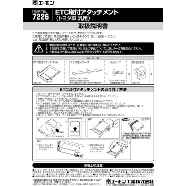 エーモン ETC取付キット Y7226 トヨタ車用 アクア カローラアクシオ カローラフィールダー シエンタ タンク ルーミー ライズ ネコポス