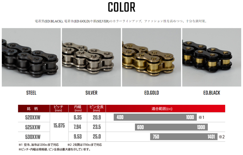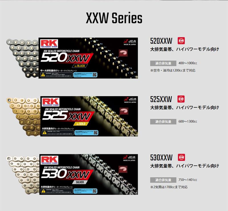 RK ドライブチェーン XXW Series 530XXW カラー:ED BLACK/CLF カシメジョイント/適合排気量 750-1401cc※2気筒は1700ccまで対応[ヤマトネコポス発送]
